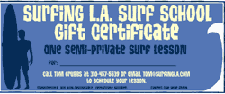 All images and text owned by Surfing L.A. Surf School /Tom Grubbs. All rights reserved. Surfing L.A. Surf School PO Box 6575, Malibu, California 90265, USA Tel. 1-310-663-0661 Site design by Zero.